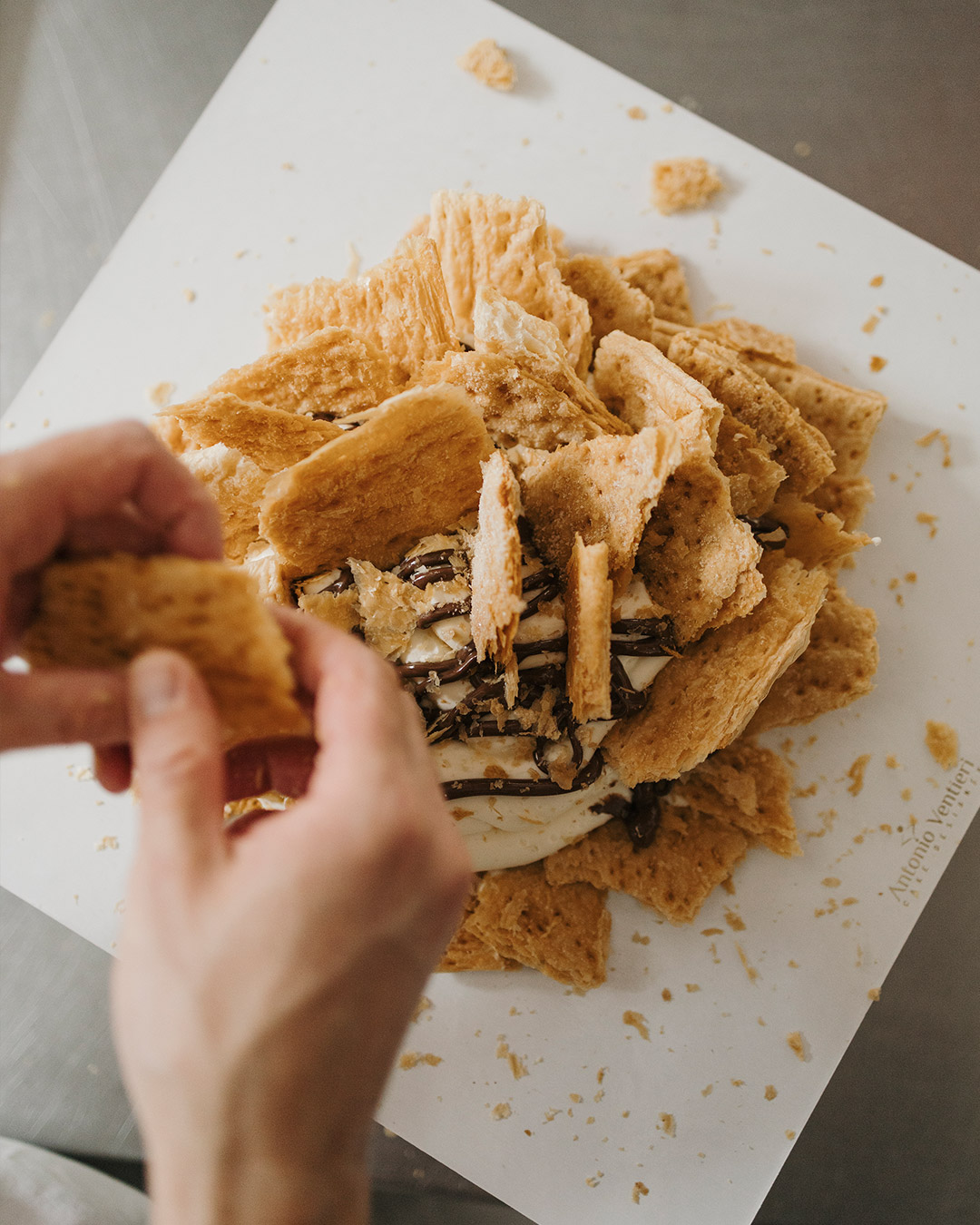 Millefoglie scomposta con crema chantilly.